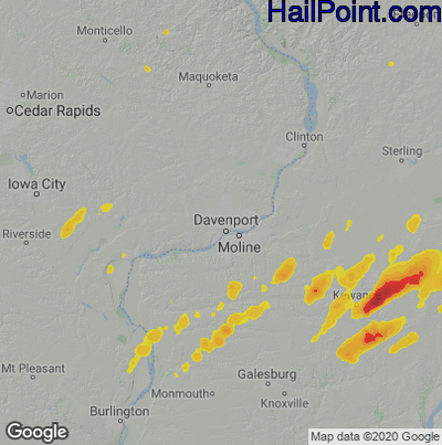 Hail Map for Davenport, IA Region on June 13, 2024