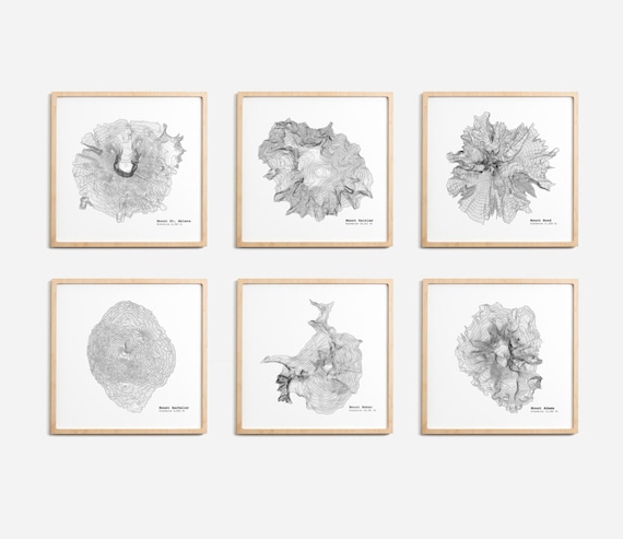 Pacific Northwest Mountains Topographic Map Art Print Set Rainier
